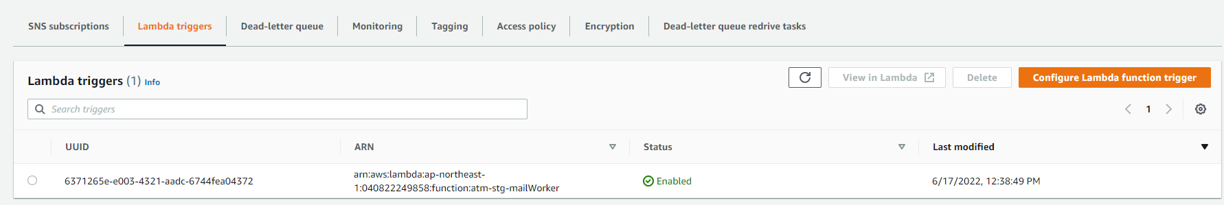 After creating atm-stg-queue. The user is required to add Lambda triggers to config sending email jobs.