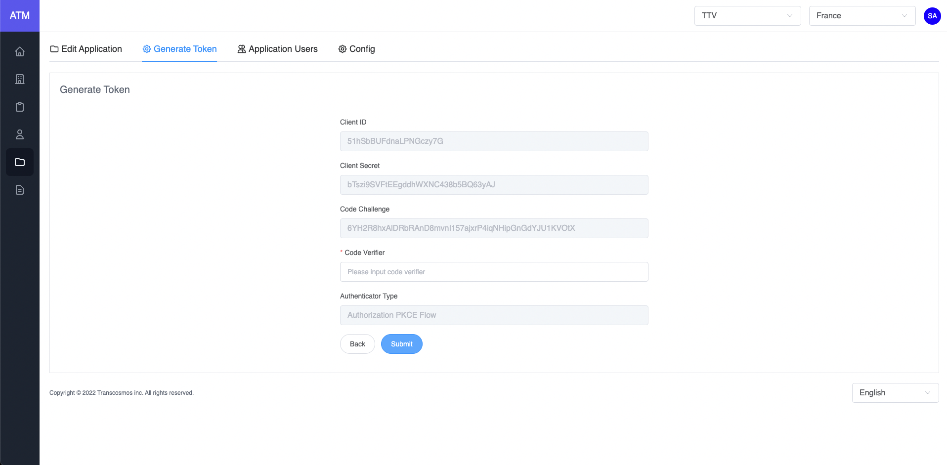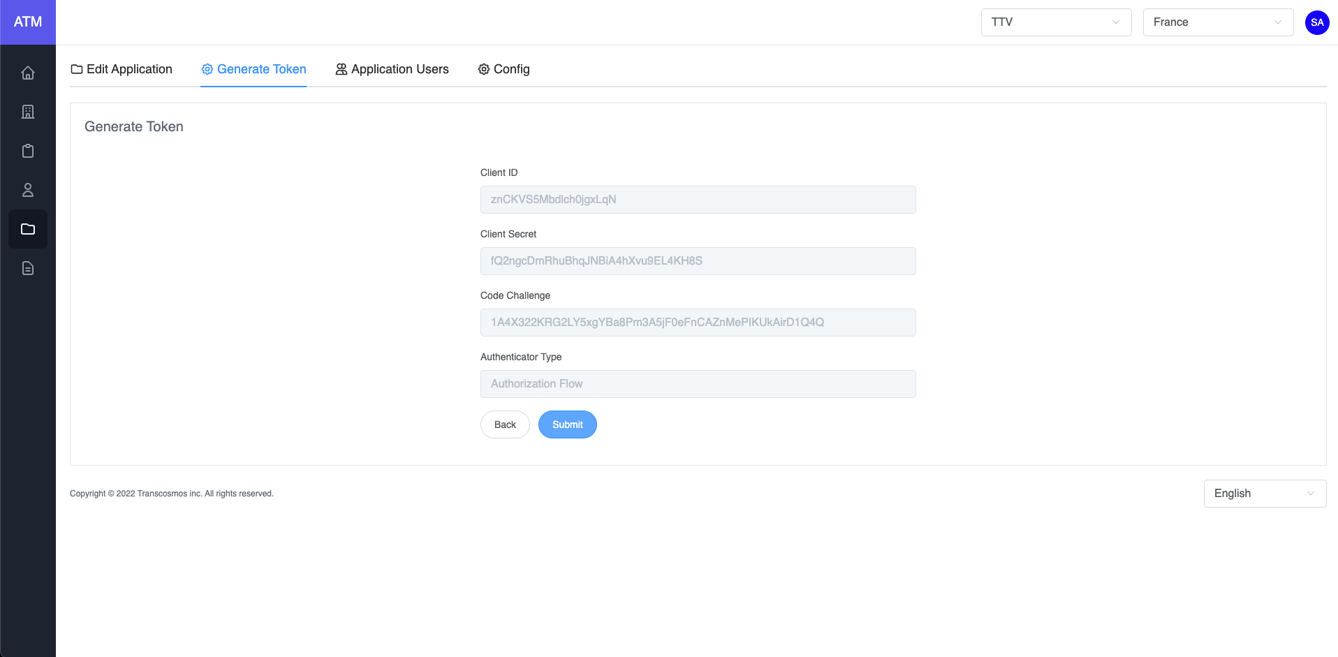 • Click on Submit button to generate access token
