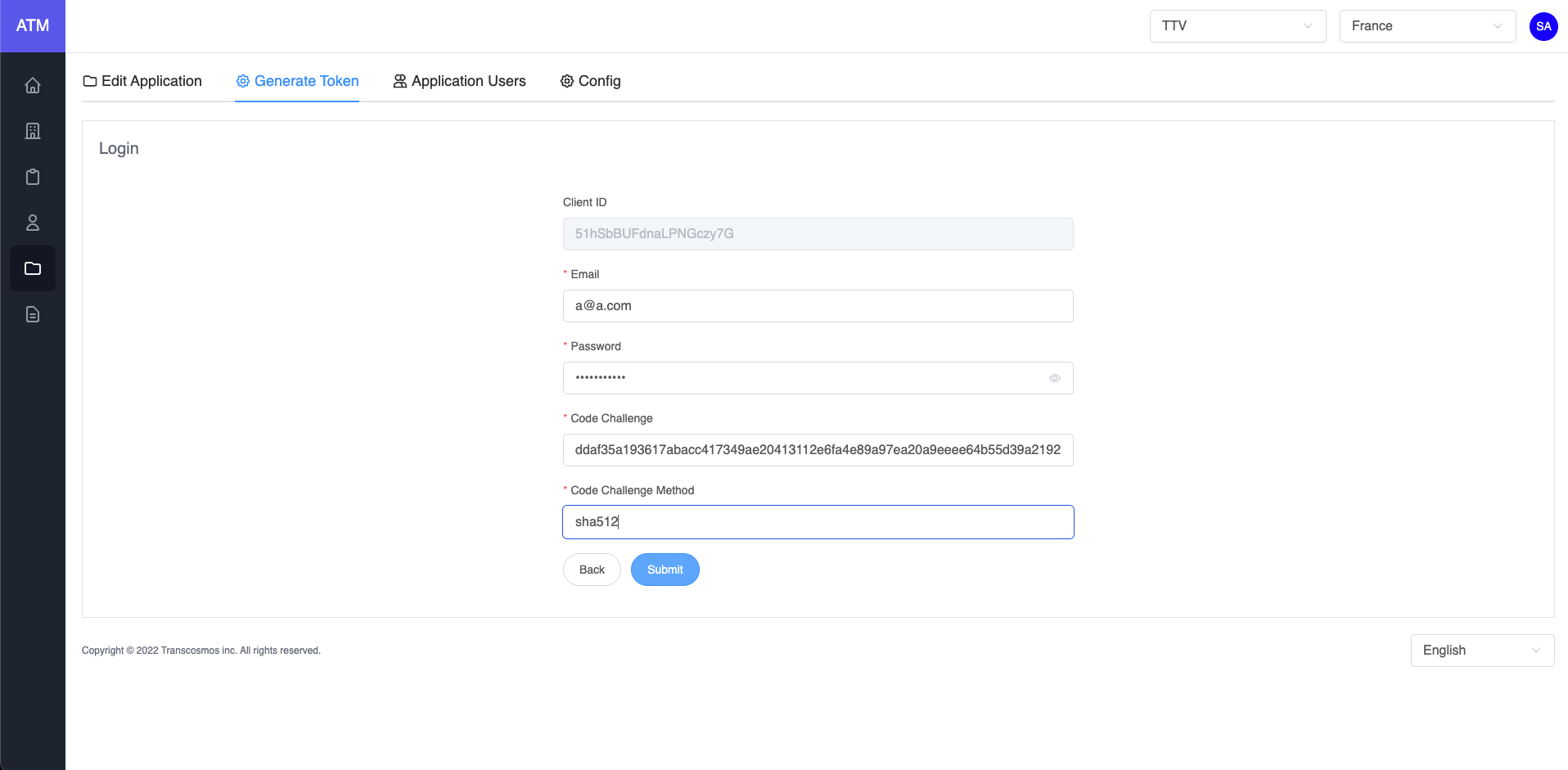 • Enter Email, Password, Code Challenge and Method to login and get code