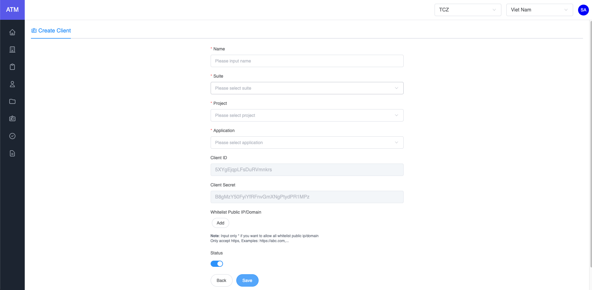 - Enter the client name