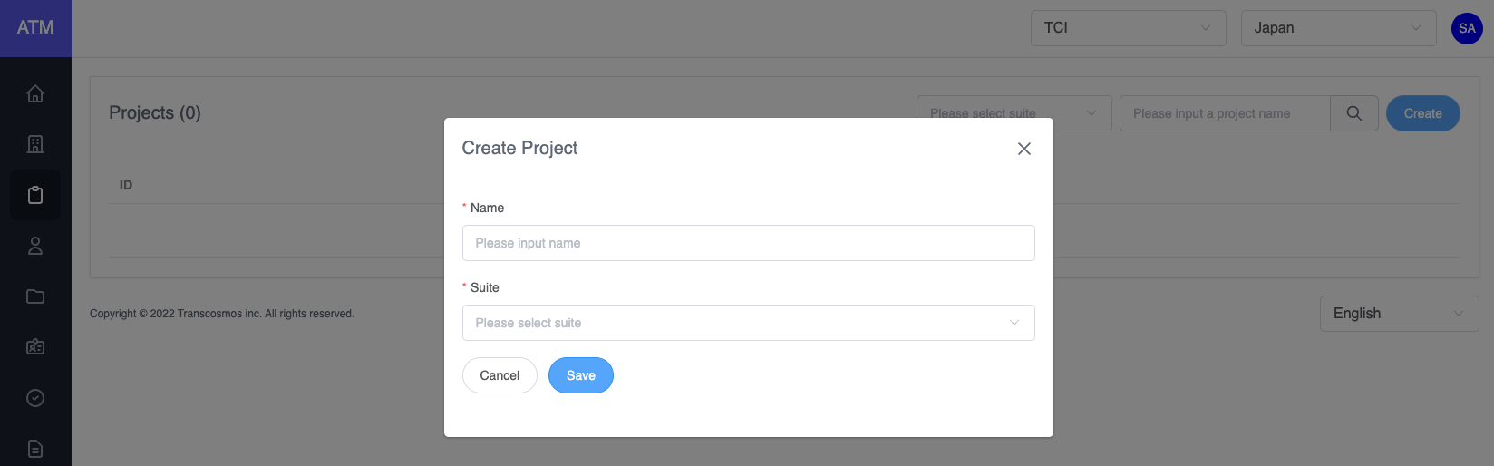 • Enter and select data: project name and suite