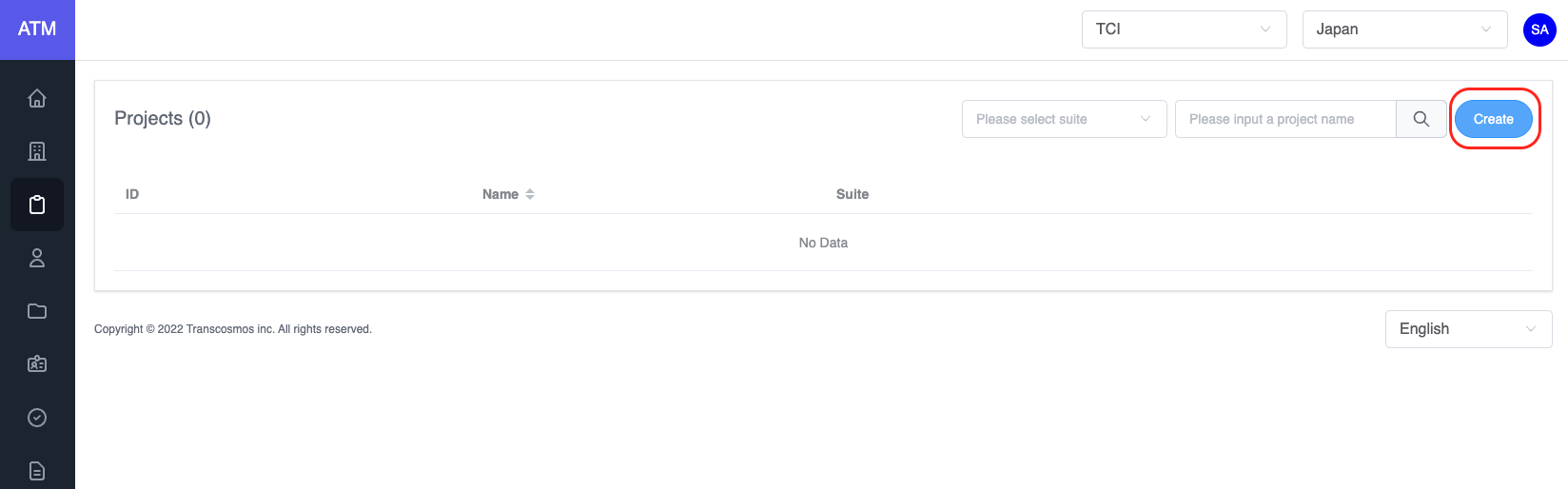 • Click on Create button to create a new project