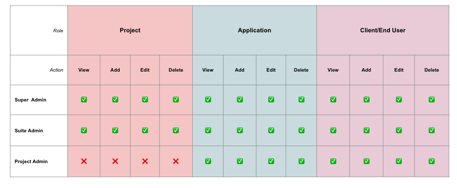 • Suite Admin: This role is mainly for Project PM. Users assigned to this role are able to manage the application list.