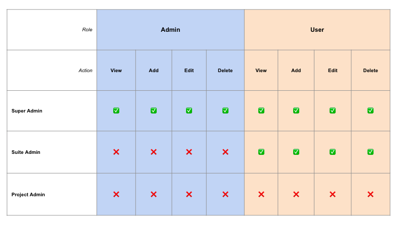 ✅ : Can View/Add/Edit/Delete